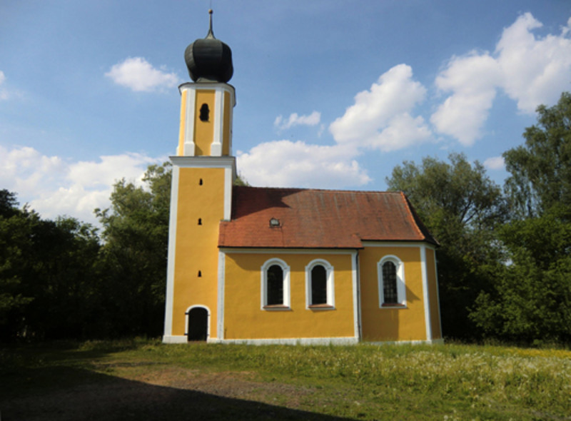 Der Bau fällt in die Pestzeit zu Anfang des 16. Jahrhunderts: Der Überlieferung nach ließ die einzige überlebende Tochter des angrenzenden Bauernhofes die Kirche um das Jahr 1517 errichten (Datum der heute noch im Turm befindlichen Glocke).
